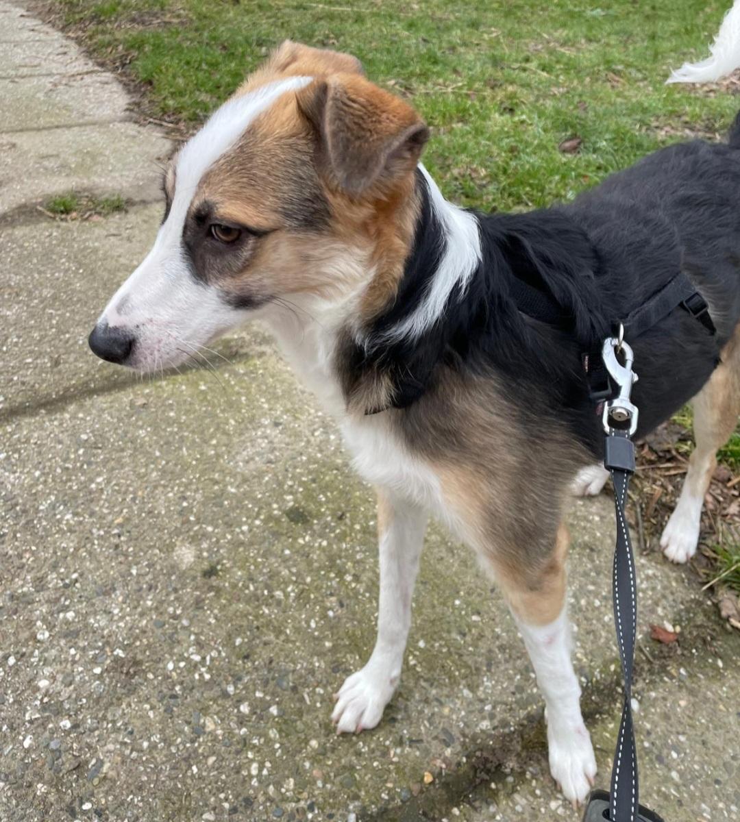 Romy is een rustige, zachtaardige jonge hond. Ze zit momenteel in een gastgezin met kinderen, dat gaat heel goed. Romy heeft een hondenvriendje nodig daarom kwam zij terug van adoptie. Ze is lief voor mensen, kinderen en andere honden. Het is een slanke hond, hoog op de pootjes, makkelijke vacht.