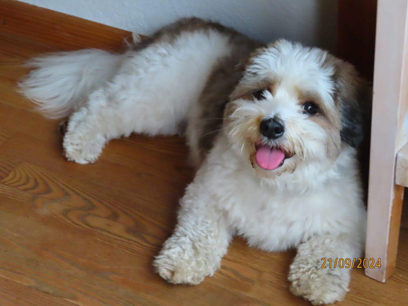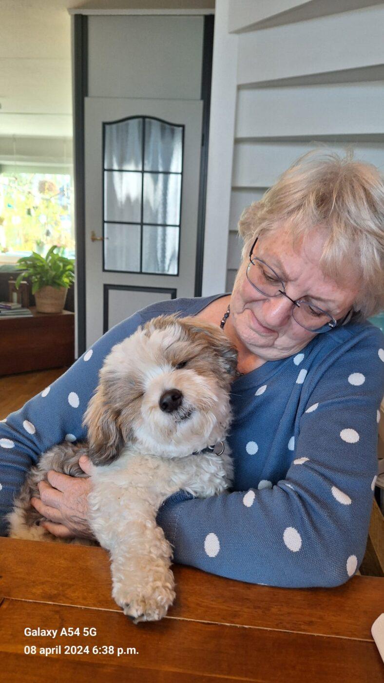 Bella is een klein hondje en is ontzettend lief en leuk om te zien. Dit meisje gaat graag mee op pad en loopt keurig mee aan de riem. Soms blaft ze naar een andere hond, maar vaak gaat het goed en reageert ze niet als ze naar haar blaffen. Ze kan soms schrikachtig reageren op grote dingen die plotseling in beeld komen bij het wandelen. In de auto is Bella braaf, ook al lijkt ze het niet echt fijn te vinden. Samen met haar baasje heeft ze een cursus gevolgd en dat deed ze heel knap. Bella woont momenteel samen met een kat, en dat gaat eigenlijk heel goed: Bella heeft respect voor de kat. Als ze buiten een kat ziet wil ze er wel achteraan. Ze is dol op bepaalde spelletjes met een knuffel en een prop papier wat haar baasjes voor haar weggooien. Bella is een slim meisje en laat alle spullen in huis met rust. Dit meisje kan goed alleen thuis zijn, ze heeft in huis de vrijheid om rond te lopen, ook ’s nachts en ze is dan altijd rustig. Bezoek aan huis wordt blaffend verwelkomd, want Bella wil uiteraard wel wat aandacht. Deze kleine diva gaat iedere 2 maanden naar de trimsalon en daar is ze heel lief en geduldig. Voor kinderen is ze op haar hoede, dus we plaatsen haar in een gezin of bij een baasje zonder kinderen.