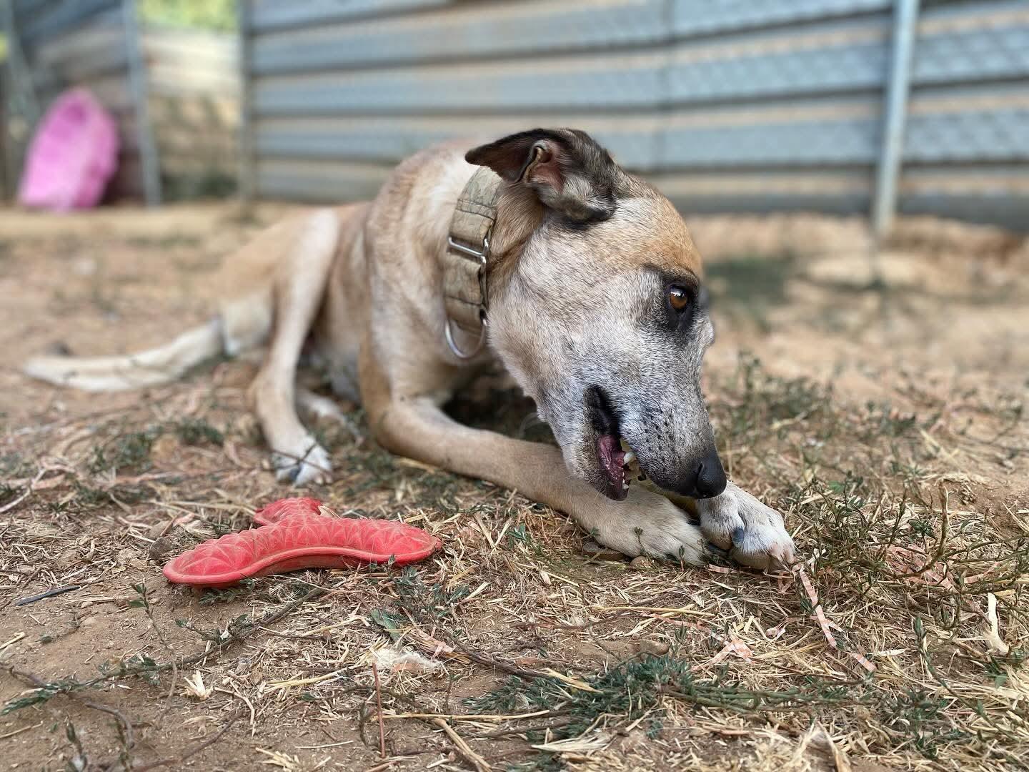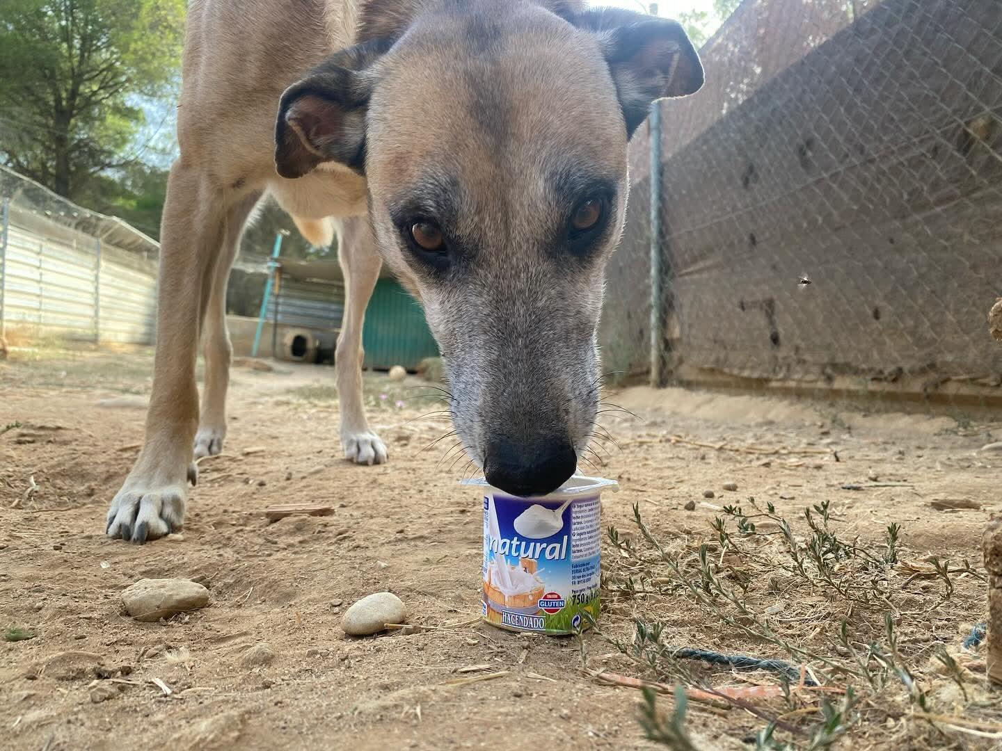 Zij is goed met alle honden. Met katten kunnen we testen.