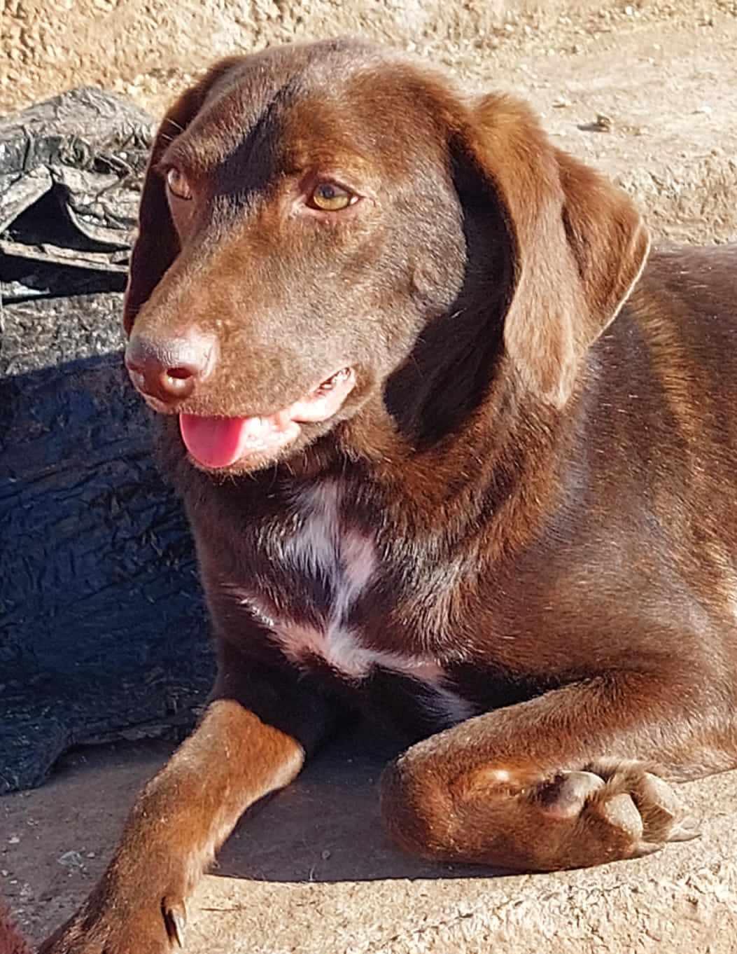 Ze zat vastgebonden aan een deur van het asiel, waar aan de binnenkant honden aan het blaffen waren. Ze was doodsbang. Het duurde uren en uren voor er mensen kwamen, ze bonden haar in de nacht aan de deur. Gelukkig kwam ze vlot bij nadat er mensen waren. Een aai, een knuffel en ze knapte op. Maar om echt zielsgelukkig te zijn heeft ze een echt eigen mens nodig