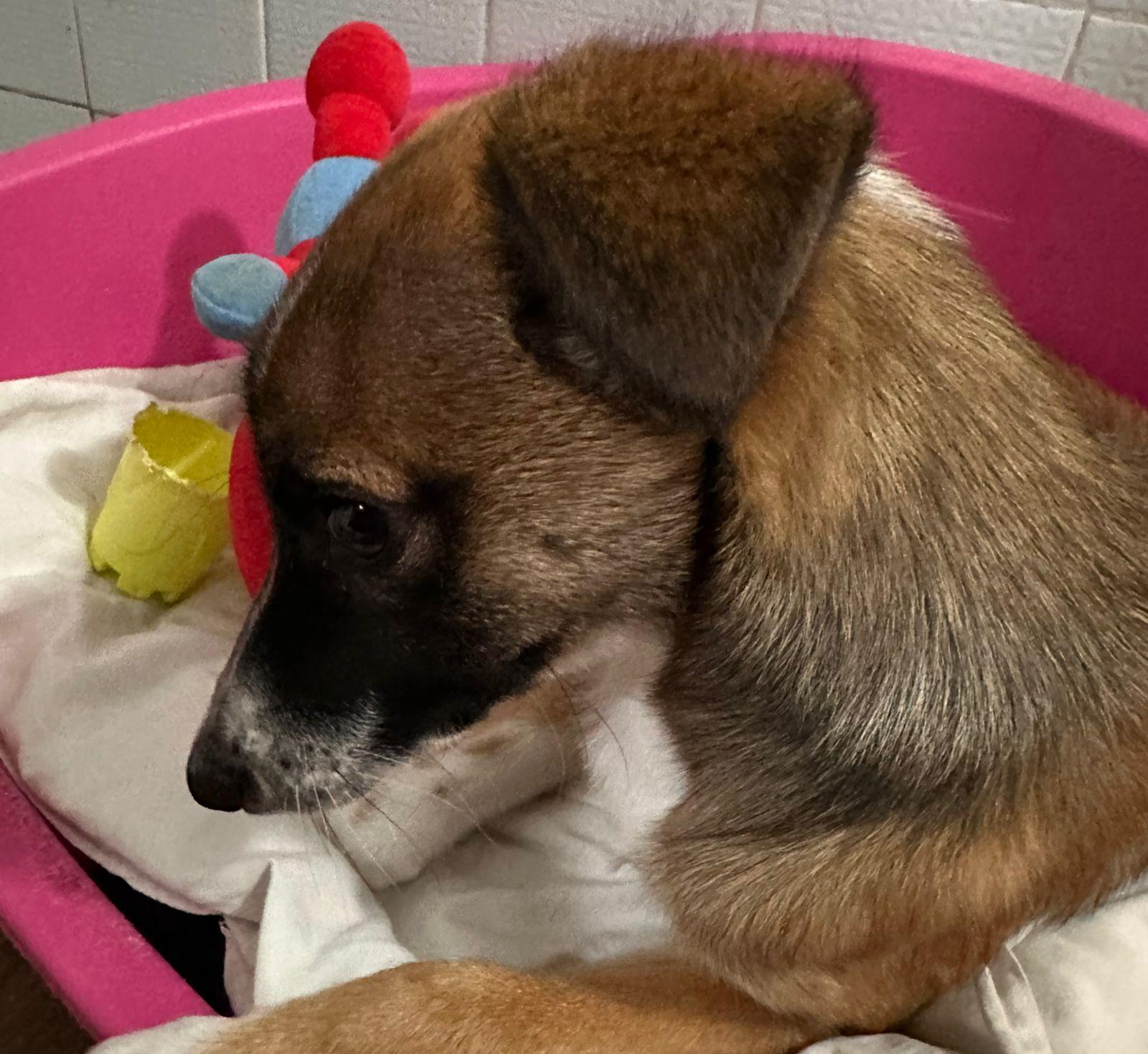 Sky is een vrolijke jonge reu van net een half jaar oud. Hij woont sinds pup zijn bij een lief gezin met een jong kindje. Helaas is er verandering in het gezin gekomen, het baasje en het vrouwtje zijn beide druk aan het werk. Er is geen tot weinig tijd meer voor Sky en dat verdient hij niet, want hij is nog zo jong en energiek. Hij houd van spelen en rennen maar kan ook uren rustig in zijn mandje liggen dromen. Sky is zindelijk, hij gehoorzaamd goed en is leergierig, een cursus op een hondenschool is zeker een aanrader. Zie jij Sky wel zitten en wil graag aan de slag met deze lieve hond?