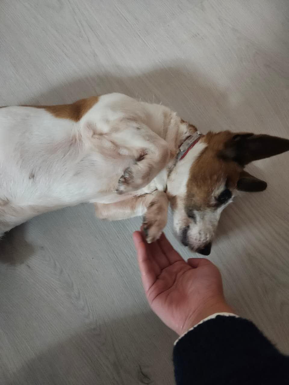 Onze hond is een vriendelijke en aanhankelijke hond met een zachtaardig karakter. Ze is dol op menselijk contact en gaat goed om met kinderen en andere honden. In huis is ze rustig en blaft ze weinig. Ze is over het algemeen gezond, alleen heeft ze een klein gaatje in een tand. Ze heeft wel veel aandacht nodig en blijft niet graag alleen thuis. Dagelijkse wandelingen zijn belangrijk voor haar; aa