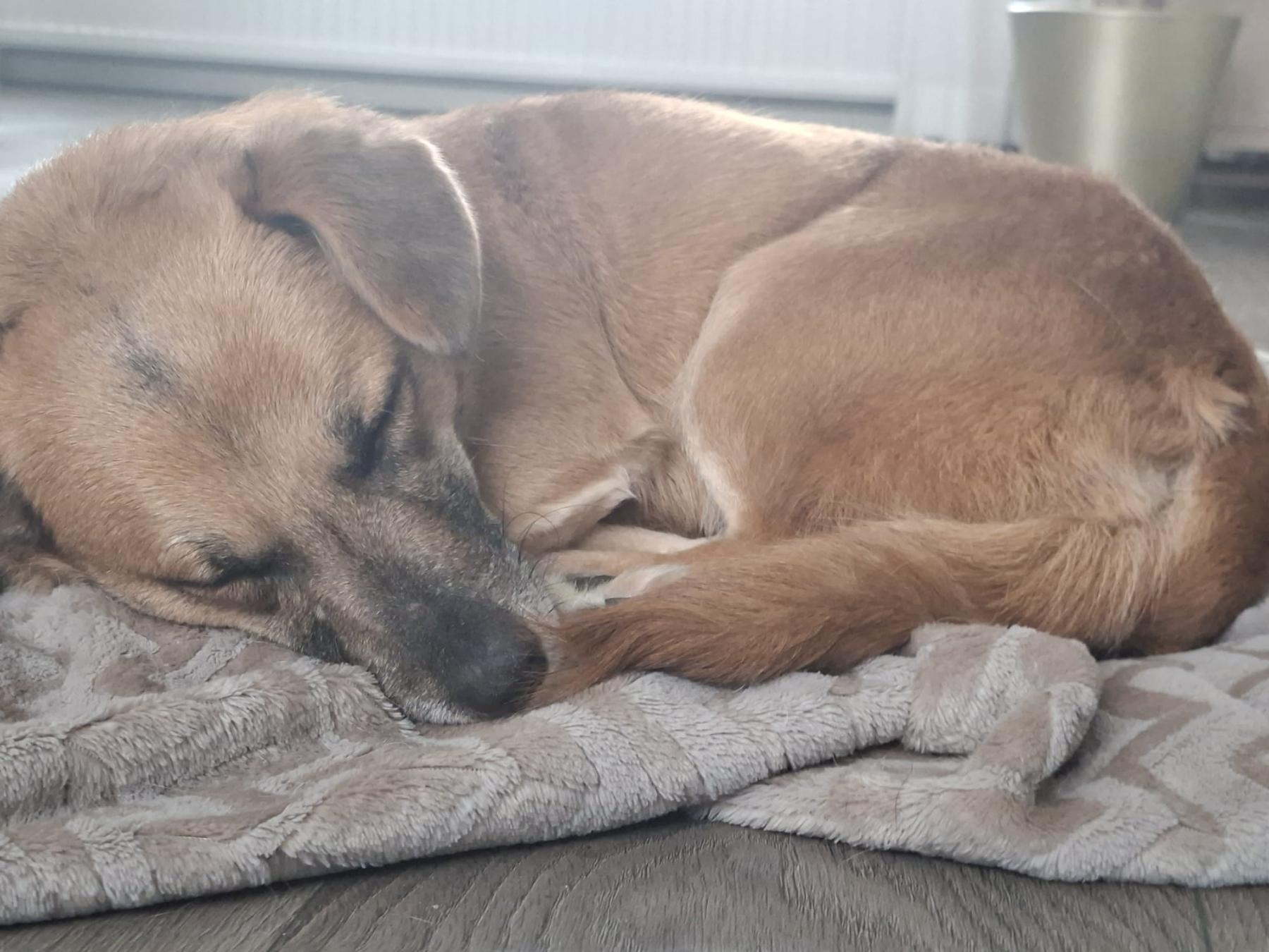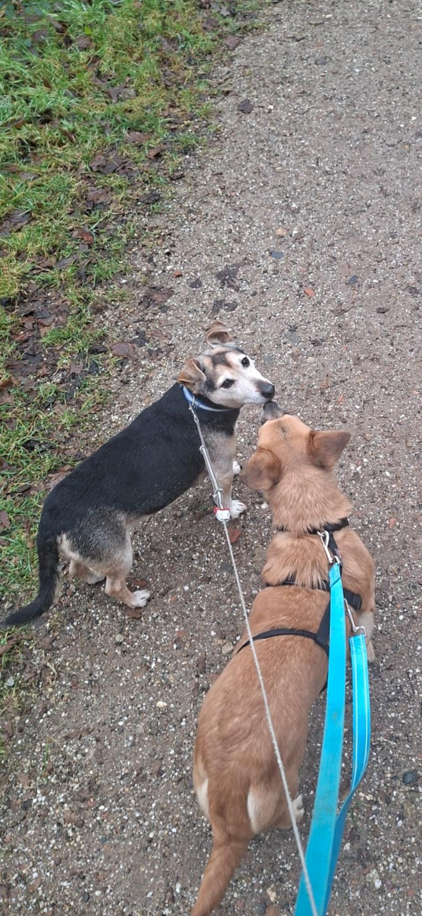 Spicy is een lieve, rustige hond die dol is op knuffelen, maar zich ook prima alleen kan vermaken in haar mandje. Ze kan goed omgaan met andere honden en speelt graag met hen.