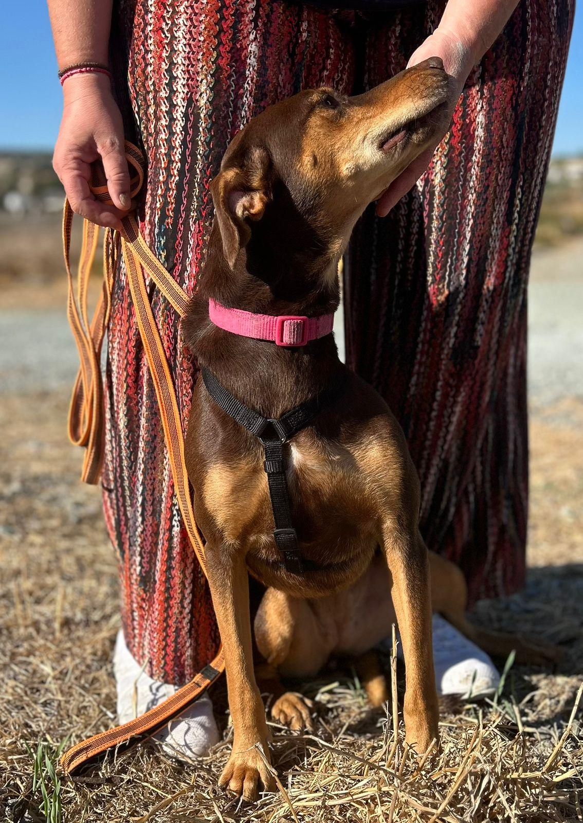 Ze is dol op wandelingen en ontdekt graag de wereld met haar nieuwsgierige neus. Aan de lijn lopen gaat goed, al kan ze in het begin even stuiteren van enthousiasme 😄