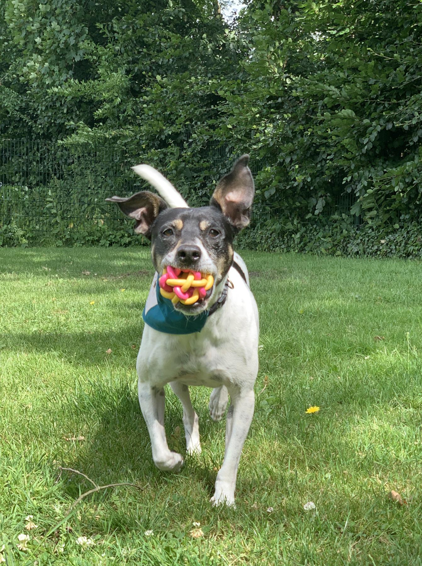 Trufa zoekt baasjes die met haar willen ballen! Ze is aanhankelijk, speels, energiek, sociaal en loopt goed mee aan de lijn en kan even alleen thuis zijn. Al is het geen kant en klare hond en heeft zij ook momenten dat ze iets spannend kan vinden. Voor meer informatie over Trufa en onze andere honden ter adoptie kijk hier