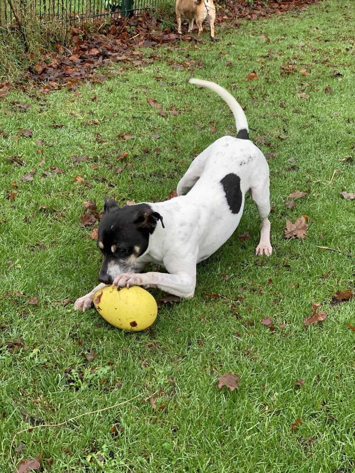 Trufa hebben we het afgelopen jaar goed leren kennen en gezien hoe graag ze buiten vertoefd, weer of geen weer. We hebben haar passie gezien voor ballen en knallen op het hondenveldje op het terrein van de opvang. Een omheinde tuin met gras diep genoeg (min. 15 meter) om dit te uiten is dan ook een vereiste bij adoptie. Net als een baasje die het oprecht leuk vindt om elke dag samen met haar buiten te ballen. Naast dat Trufa er van geniet, geeft het ballen haar houvast en geeft het voluit kunnen sprinten stress ontlading wat haar, als ze na adoptie moet wennen, zal voorkomen dat haar stressemmertje gaat overlopen.