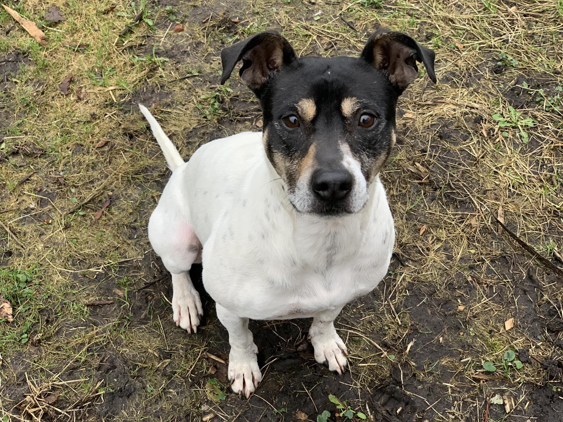 Dit powerpakket zit vol energie en zoekt sportieve baasjes. Trufa is een middelmaat van 45cm en een boerenfoksachtige mix die één en al spieren is. Ze is speels en actief maar kan ook heerlijk rustig op de bank chillen. Buiten op het terrein slaat ze snel waaks aan maar in huis is ze rustig. Hoewel ze braaf op commando gaat zitten, is ze sterk en trekt ze aan de lijn. Loslopen is nog geen optie en omdat ze graag buiten is, geven we de voorkeur aan een huis met omheinde tuin boven een appartement (ze kan wel trap lopen). Ze is niet bang voor verkeer en gaat graag mee wandelen. Ze is zindelijk, slaapt in bench de nacht door en even alleen zijn lijkt geen enkel probleem. Speeltjes zijn snel gesloopt maar ze laat meubels en spullen van het opvangvrouwtje met rust.