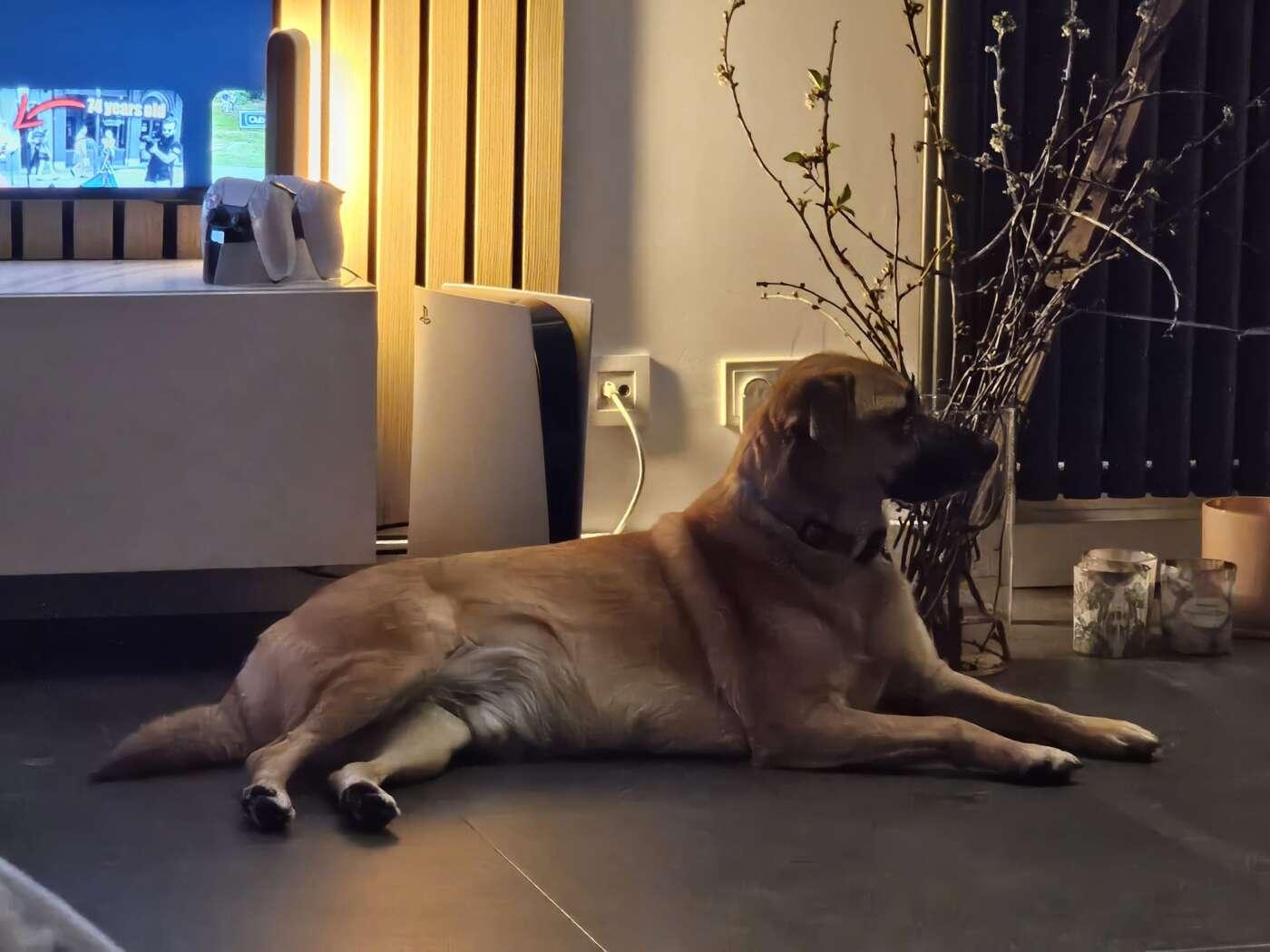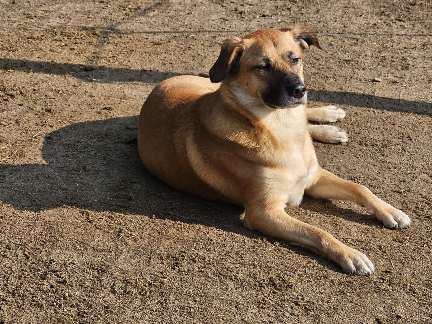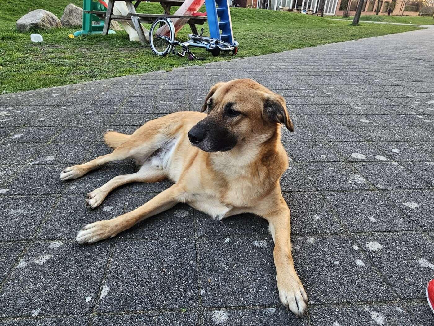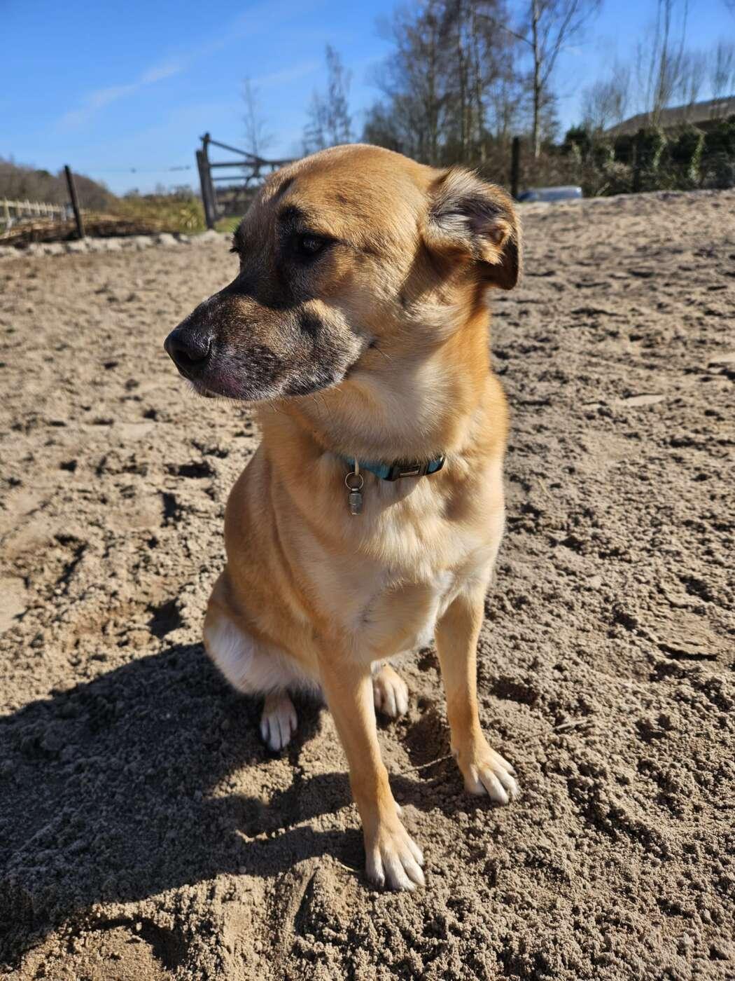 Hij kan alleen blijven, sloopt niets en is rustig in huis. Hij ligt graag in de tuin of in het zonnetje.