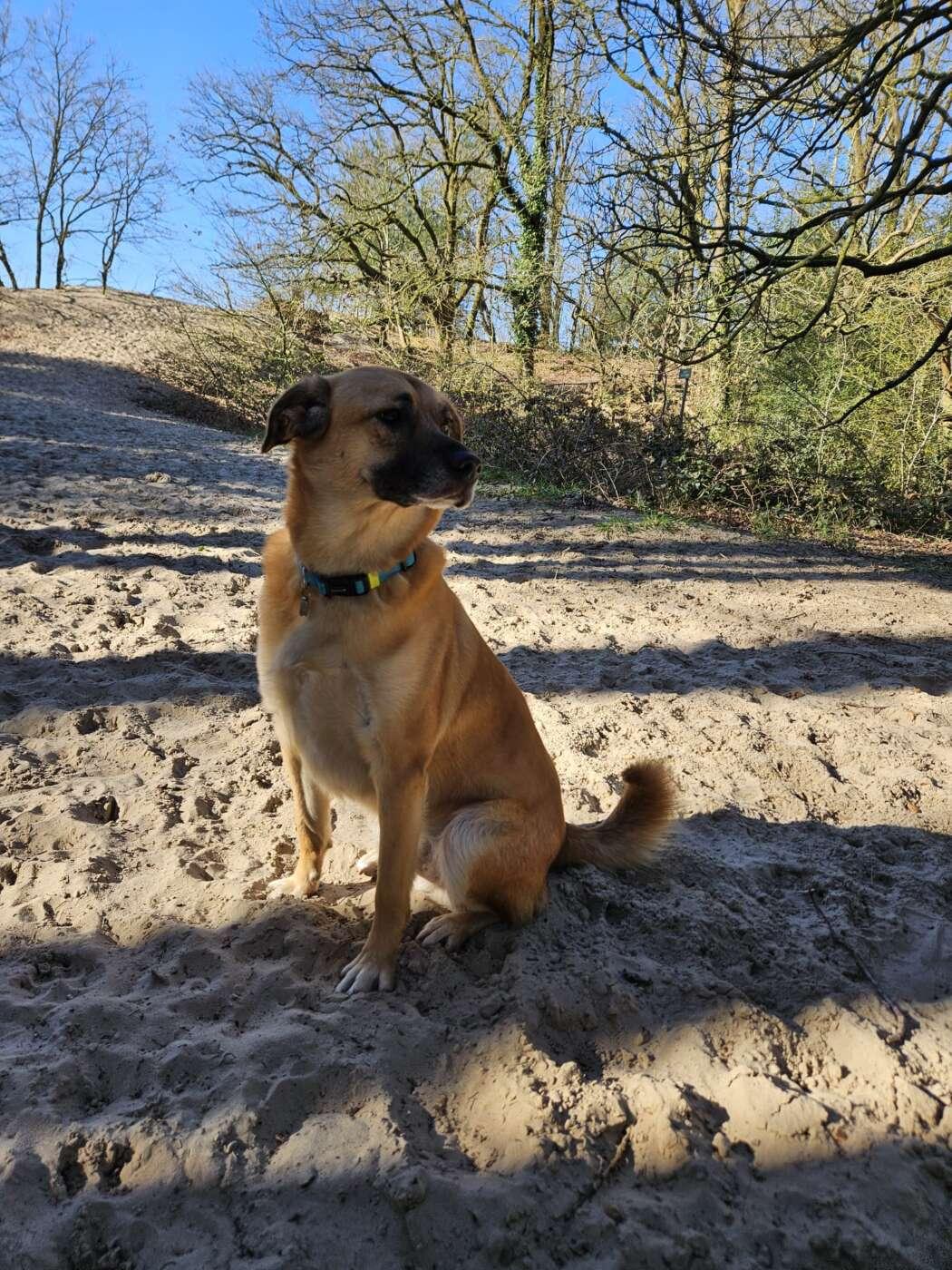 Buiten luistert hij goed, kan commando’s, is goed met alle andere honden, sociaal, speels en gewoon een heel blij ei. Ook als je andere honden tegenkomt is hij gemakkelijk terug te roepen.