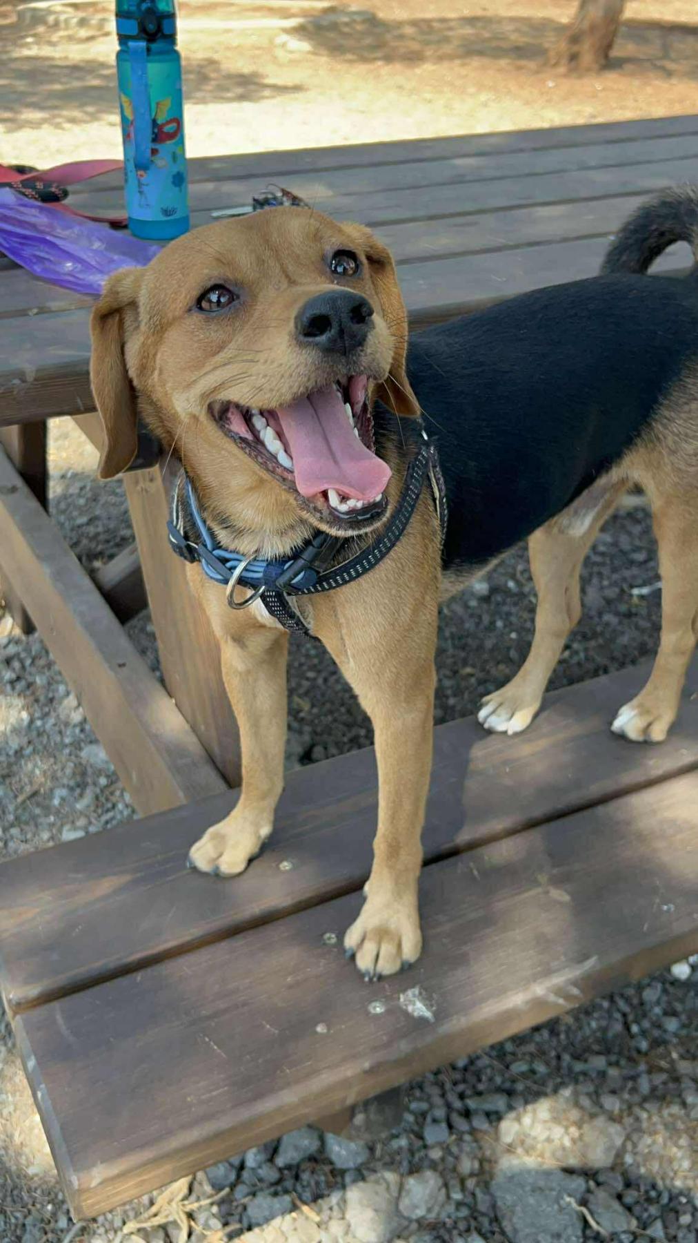 Deze lieve jongen is een 7 maanden oude Griekse Hound-mix en op zoek naar zijn gouden mandje!