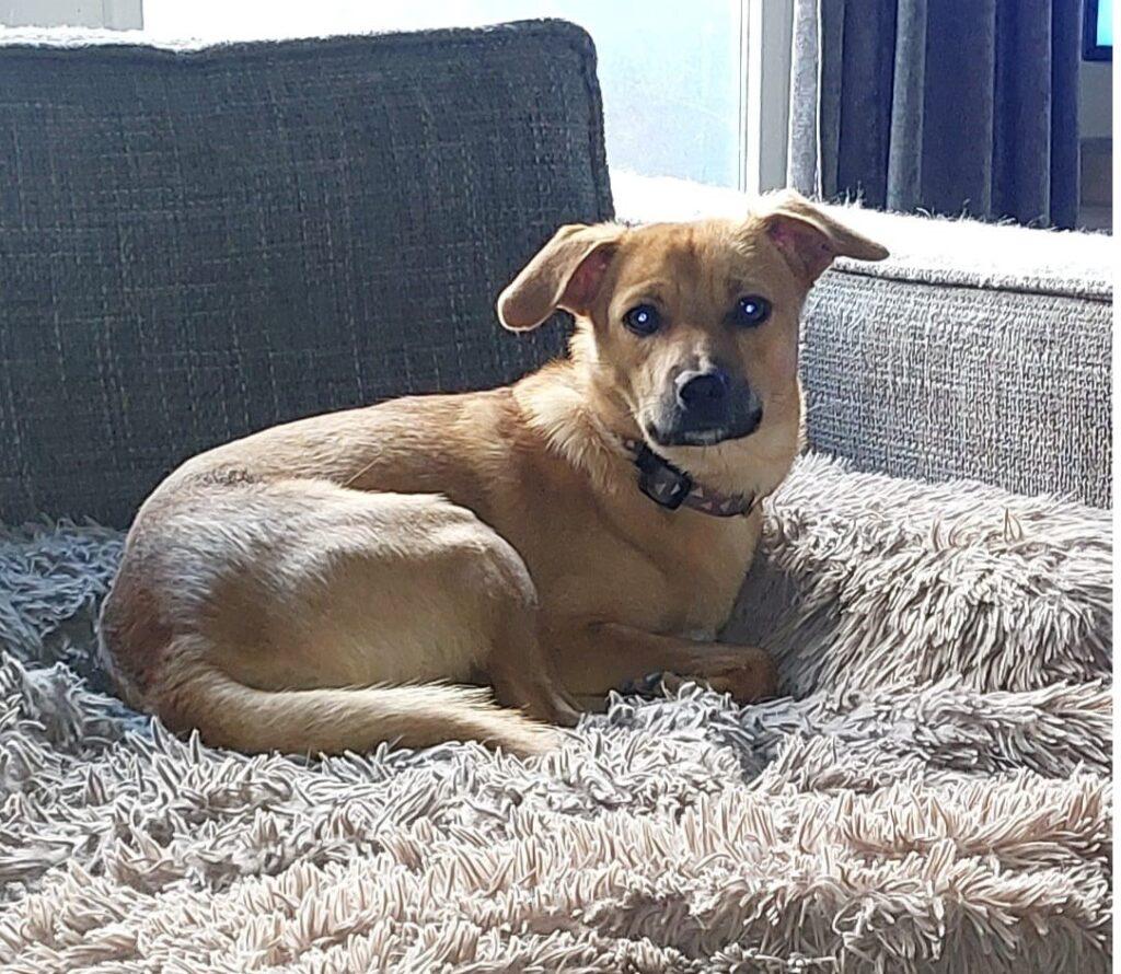 Van een onzeker en bang hondje is Yellow opgebloeid naar een super lieve en vriendelijke jonge hond.