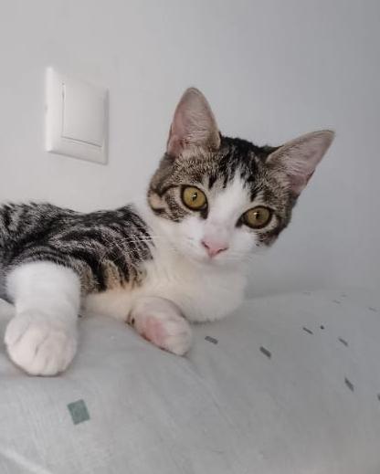 Agape is een hele lieve kat. Absoluut geweldig met mensen. Ze is knuffelig en vriendelijk. Ze heeft een tijdje bij familie van het gastgezin gelogeerd waar katten en honden zijn. Als ze goed geïntroduceerd wordt kan ze dat goed. In haar gastgezin is ze enig-kat. Agape is gevonden als baby kitten met haar familie. Ze is de enige overlevende geweest. Ze is een aanhankelijke poes geworden die heel graag lekker bij je wil slapen. Ze is grootgebracht met de fles. Ze was nog te klein om zelfstandig te eten. Ze heeft in Spanje altijd bij hetzelfde gastgezin gelogeerd.