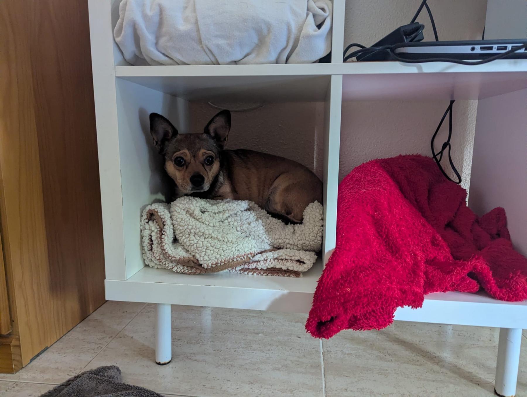 Chara is teruggekomen van haar adoptie. Hoewel haar adoptant het beste met haar voor had, kwam ze toch in gevaar. Chara kwam terug met een traagwerkende schildklier en een hernia in haar nek en rug. Ze mocht van haar hernia herstellen tijdens onze reis naar Spanje. Ze ging gezellig mee. Chara is bevriend met Mila. Ze kunnen het heel goed samen vinden. Ze hoeven niet samen geadopteerd te worden, maar het zou goed kunnen. Voor de traagwerkende schildklier krijgt ze medicatie. Chara was veel te dik, dat hielp haar hernia niet, ze is inmiddels afgevallen. Haar normale gewicht is tussen de 5 en 6 kilo. Helaas raakte haar adoptant in paniek en wilde haar in laten slapen. Natuurlijk hebben wij haar meteen opgehaald en behandelen wij haar verder. Chara is een gezellig keutelhondje. geen hondje voor lange afstanden. Ze heeft soms even tijd nodig om informatie te verwerken. Ze kan een beetje voorzichtig zijn maar als je normaal met haar omgaat laat ze dat snel los. Wij vinden haar een makkelijk, gezellig, leuk hondje.