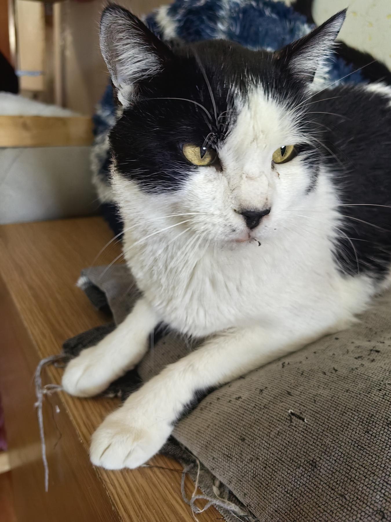 Darvin werd gevonden na een storm. Hij was gewond, zijn lip en kaak waren gewond. Hij had veel bloed. Gelukkig is alles genezen, alleen zijn lip had een paar hechtingen. Hij was zo lief, zo vriendelijk en sociaal dat we hem niet meer op straat hebben gezet nadat hij genezen was.