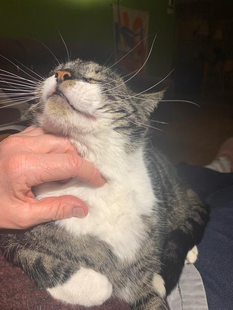 In de avond komt hij op schoot zitten/liggen en mag je hem op zijn hoofd en onder zijn kin lekker kriebelen. Niet stevig omarmen of vasthouden en dan gaat hij weer we