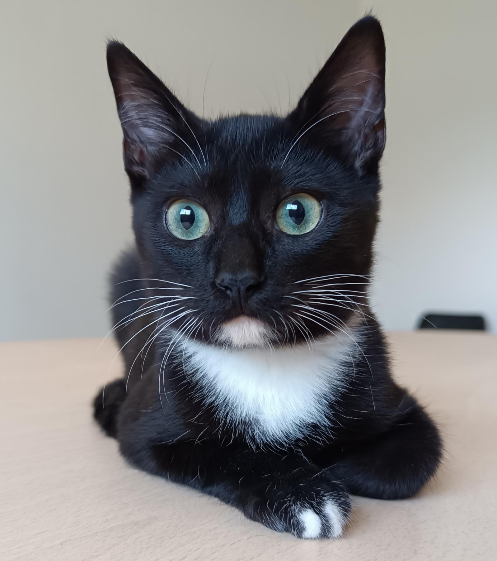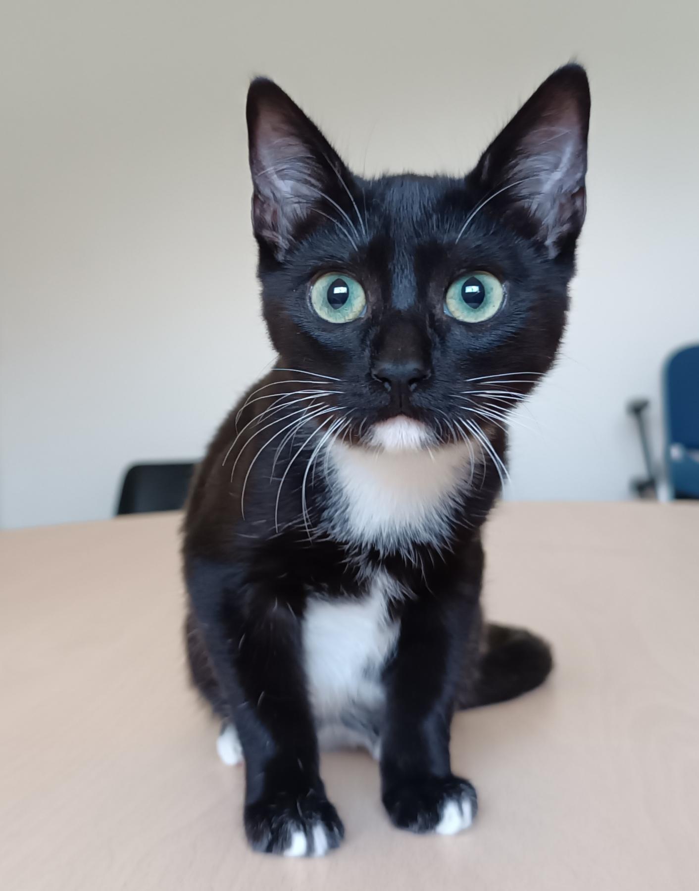 Fam is een heel nieuwsgierig en speels katje. Hij is sociaal en volgzaam, hoewel hij een beetje bang wordt bij mensen die hij niet kent en bij harde geluiden. Als hij meer zelfvertrouwen krijgt, zoekt hij jou om hem te aaien en met je te spelen.