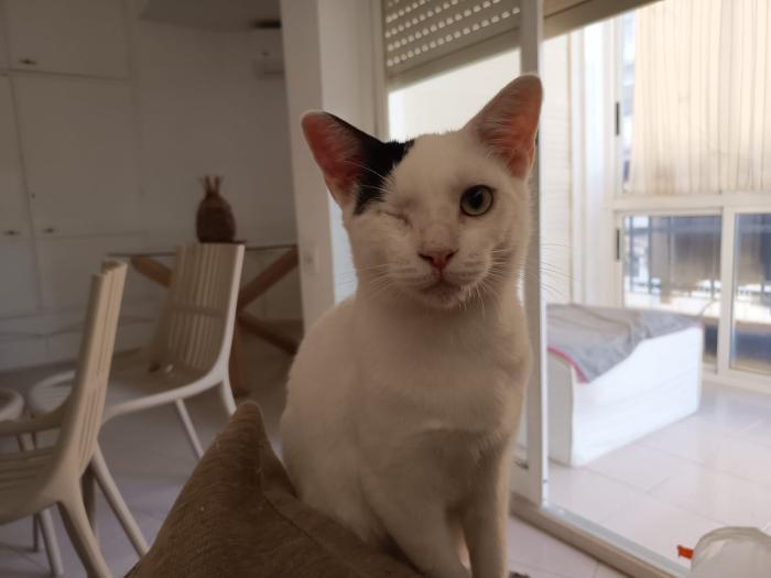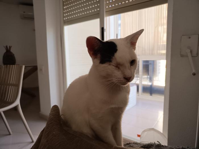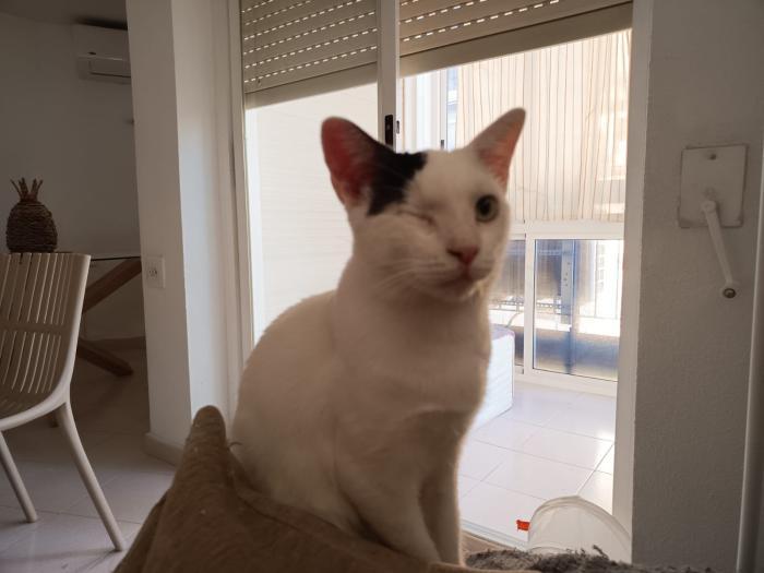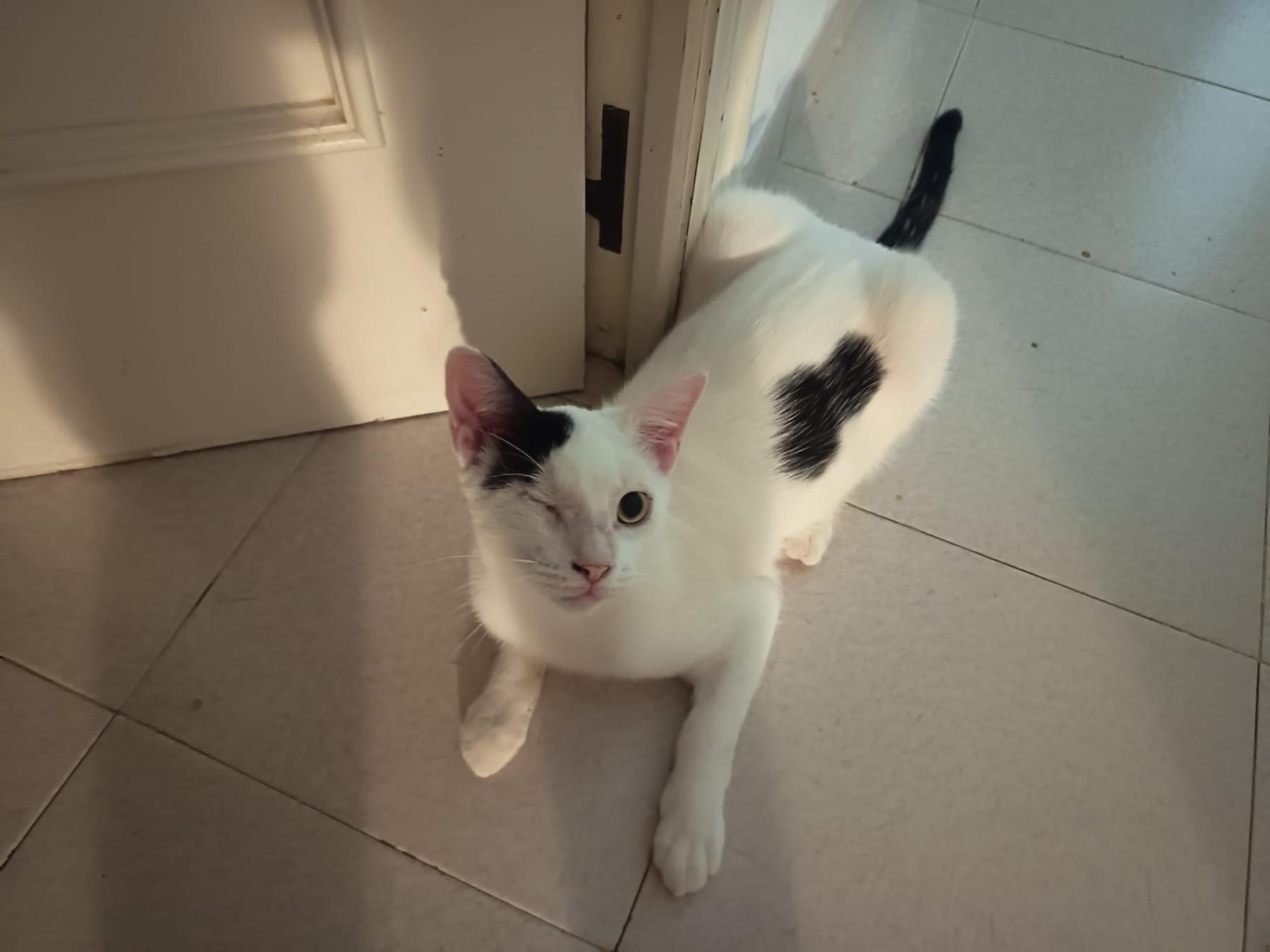 Homer is een vriendelijke leuke kat. Hij is nog zo jong en heeft al zoveel meegemaakt. Hij is naar het asiel gebracht door iemand die hem op straat gevonden heeft. Hij had een oog dat er echt heel slecht aan toe was. Eén van de vrijwilligers nam hem mee naaar huis en zorgde heel goed voor hem, maar zijn oog kon niet meer gered worden. Zijn oogje is verwijderd en nu is hij een blije gelukkige één-ogige kattenjongen.