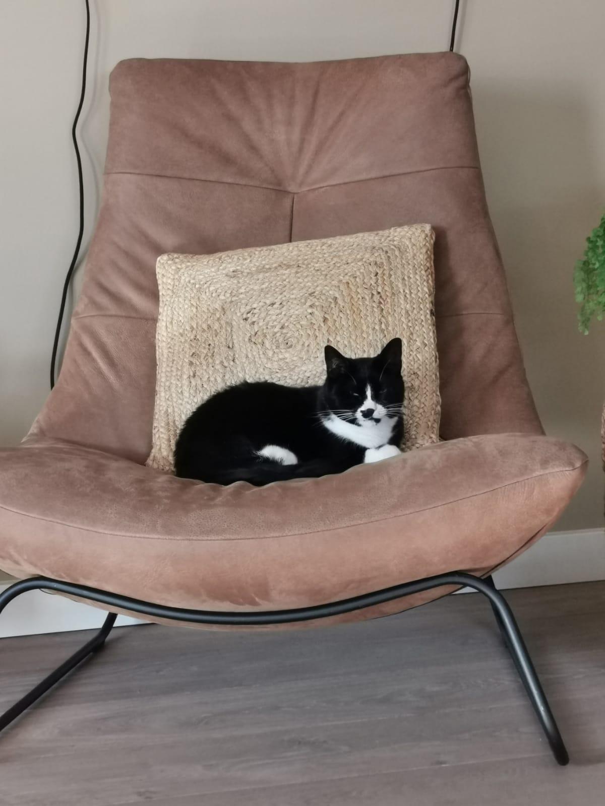 Ze is een knuffel kat. Zit graag op schoot of op de bank. Als ze je vertrouwd kan je ook vaak haar buikje aaien. Ze kan wat moeilijk wennen aan kinderen. Daarbij kan het zijn dat ze met andere katten minder goed kan opschieten maar dat kan ook specifiek aan onze kat liggen. Speelt ook graag buiten