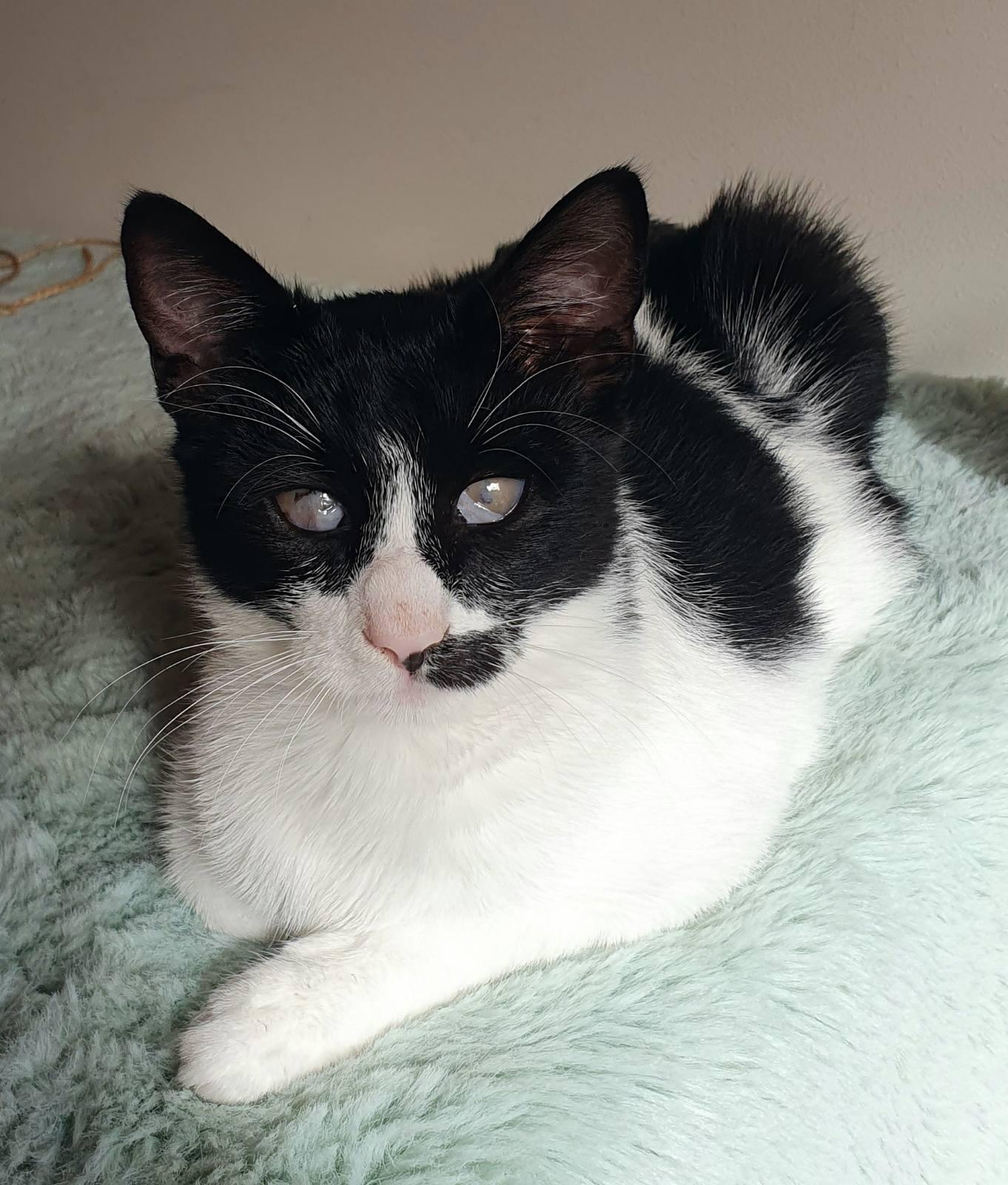 Karl is heel ziek geweest als baby en heeft daardoor vrijwel zijn volledige zicht verloren. Hij is rustig, kalm en intelligent. Het is een heel aanhankelijk diertje. Hij is dol op mensen. Hij kan goed overweg met katten en houd van slapen op je schouder, onder een dekentje. Hij geniet ervan vastgehouden te worden. Hij woont in het gastgezin in de slaapkamer, met nog een paar andere kittens. In de woonkamer zijn een hond en twee volwassen katten. Hij is gewend aan het geluid en de geur van hun aanwezigheid.