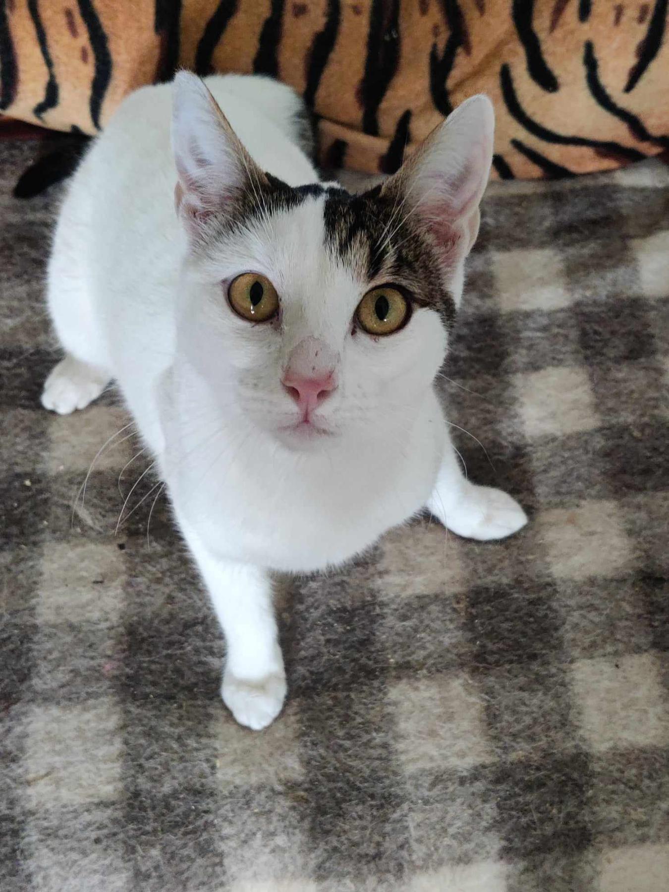 Ze is gered, samen met haar moeder en zusje. De kittens waren heel ziek en eentje lag op sterven, de hele familie werd meegenomen naar de kliniek. 20 dagen lang werden ze geobserveerd in de kliniek. Ze hebben het allemaal overleefd. Toen ze gezond genoeg waren mochten ze naar een gastgezin, daar was ook een hond. Ze groeiden op in het gastgezin en kwamen daarna in de opvang bij de andere katten. Ze komen uit een iets ander stadje dan waar de opvang van onze vriendin zit, maar altijd als ze Varna bezoekt krijgt ze wat mee naar huis vanuit de kliniek.