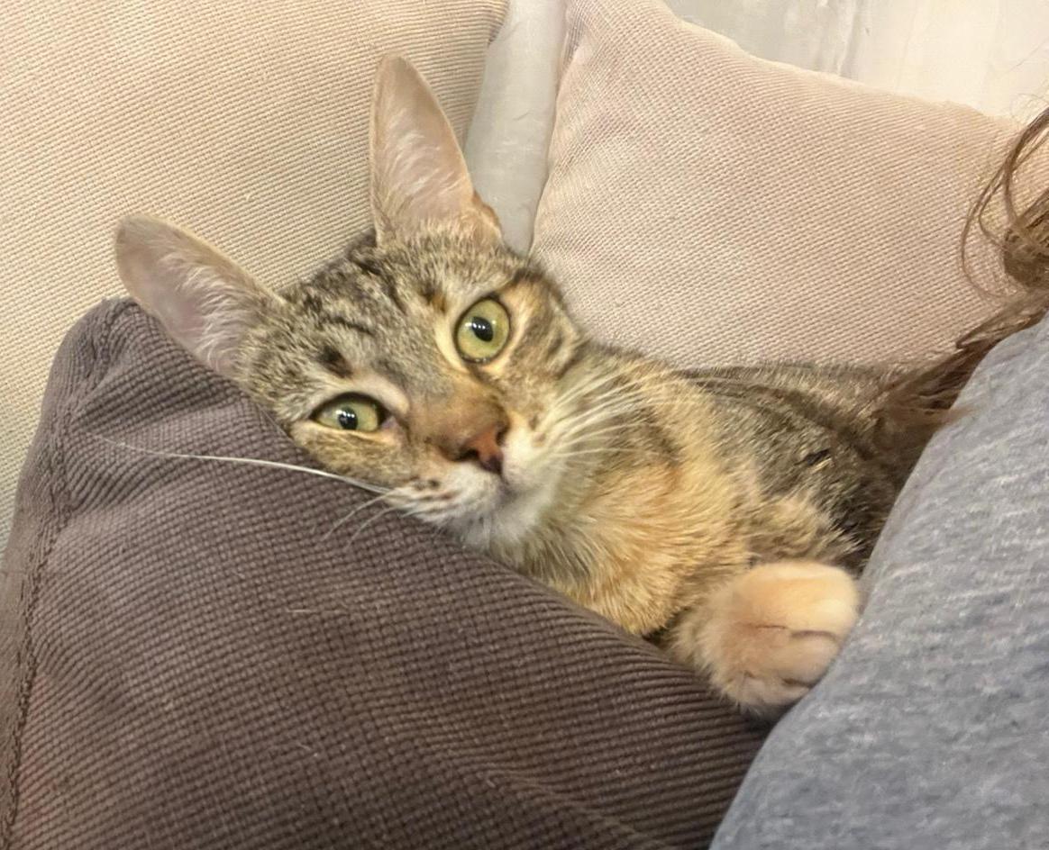 Lucy is ontzettend grappig, speels en vrolijk. Ze is vriendelijk, sociaal en dol op knuffelen. Ze vindt het heerlijk om bij ons of bij andere kattenvriendjes te slapen. Ze houdt van de hele wereld.