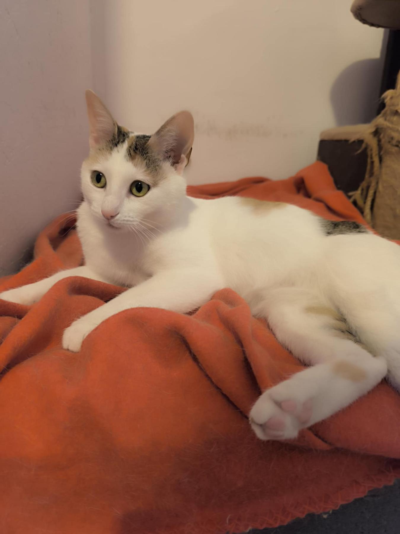 Misty leefde samen met haar twee kindjes op een parkeerplaats. De babies waren heel erg ziek ze zijn alle drie meegenomen door onze rescuer. Ze was gezond, haar babies hadden haar nog nodig. Ze heeft haar best met ze gedaan. Misty is een aardige en rustige kat.
