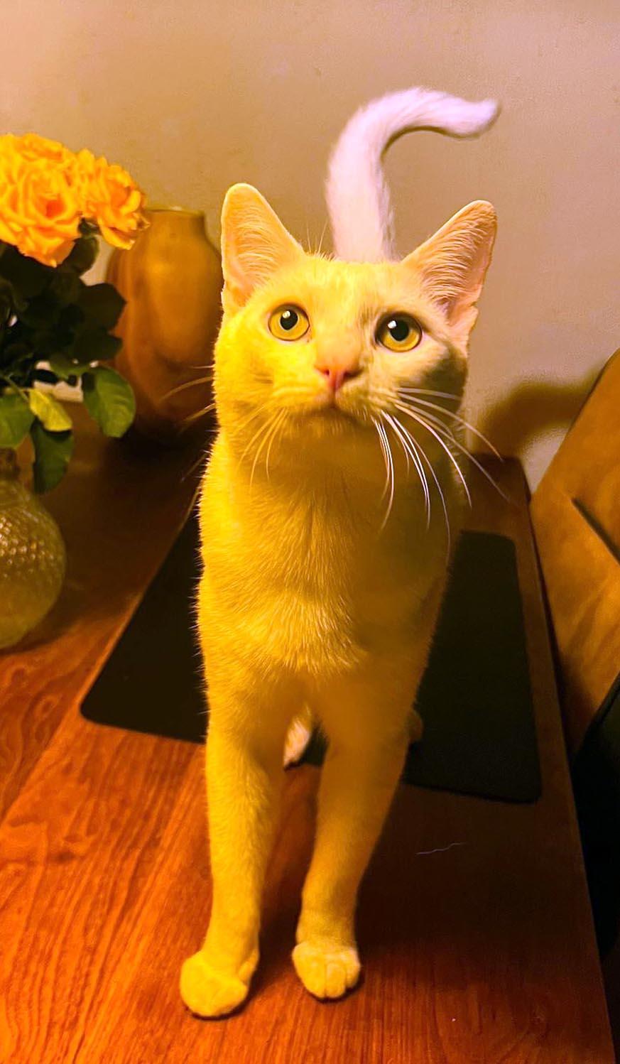 Monty komt uit België en vindt het lekker om op warme plaatsjes te liggen. Hij is gecastreerd om rustiger te worden zodat-ie met andere katten of poezen kan. Hij is rustiger geworden.