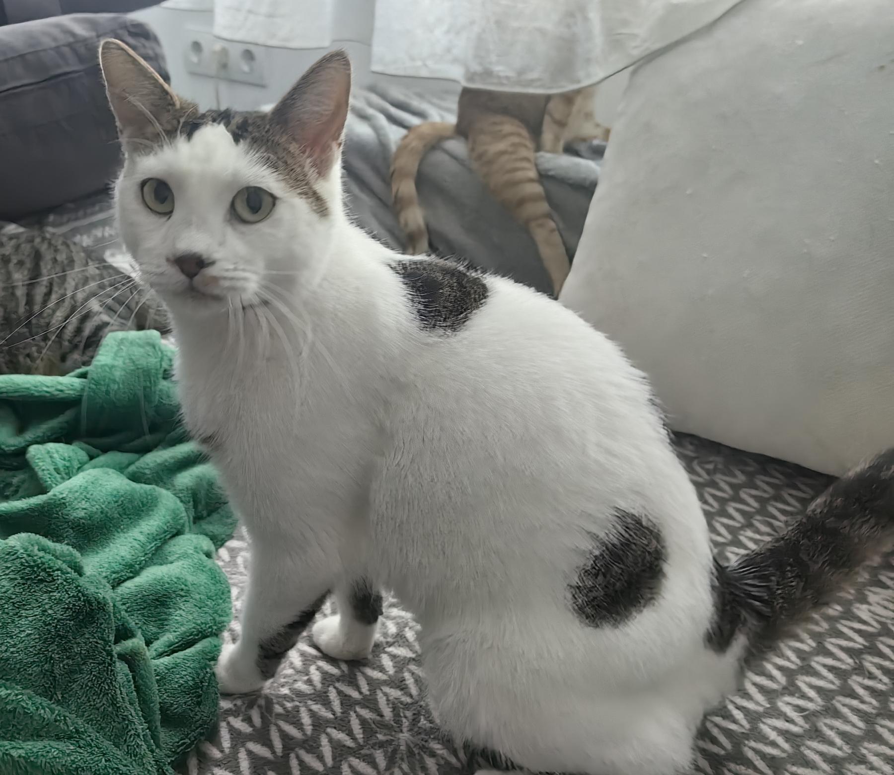 Sky werd heel ziek op straat in Bulgarije gevonden. Ze had een vrij ernstige vorm van calici, waarvoor ze infusen en antibiotica nodig had om te stabiliseren. Ze was te zwak om terug op straat te worden gezet, dus heeft de rescuer haar in een pleeggezin ondergebracht totdat ze volledig hersteld was. Later heeft de rescuer haar meegenomen naar de grote groep en uiteindelijk naar huis