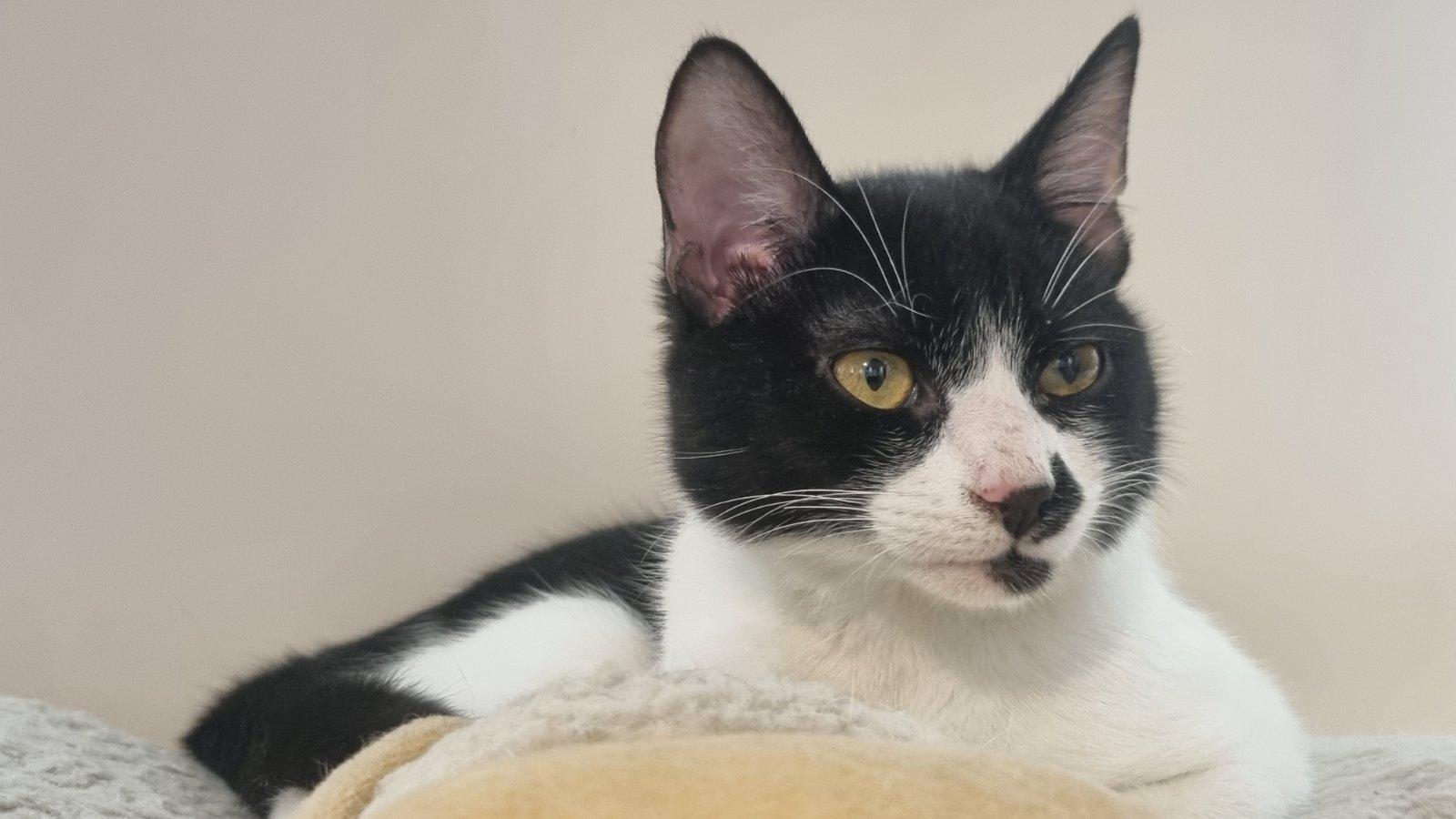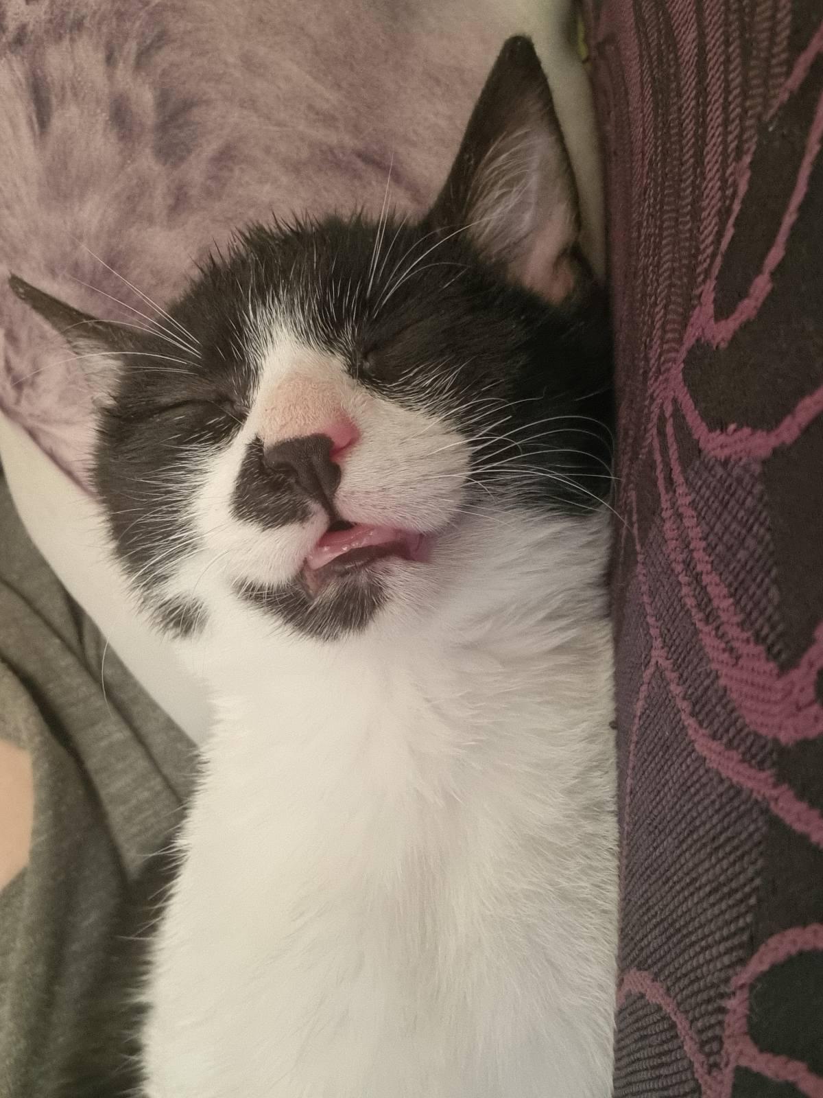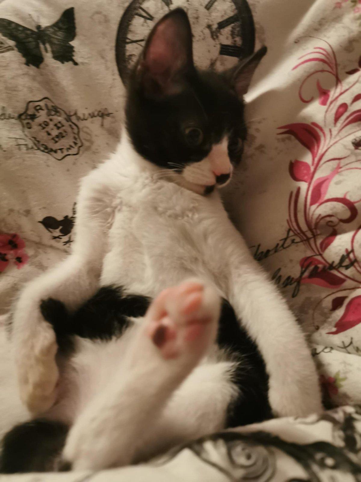 Spot is grappig en nieuwsgierig. Hij houdt ervan om alles te ontdekken en ermee te spelen. Hij vindt het geweldig om kapsels te kneden met je haar als luchtkoekjes. Hij is erg speels. Hij klimt en verstopt zich op hoge plekken. Hij is een mix tussen een aap en een kat. Het is een echte lieverd. Drink koffie in een mok, want hij wil je koffie kopjes geven (alleen koffie, andere dranken laat hij staan). Hij eet veel en eet allerlei soorten voedsel. Hij gaat eten uit de bakjes van de andere katten als zijn eten op is. Het is een echte smulpaap. Hij wil de mens zelfs naar het toilet volgen als hij de kans krijgt. Hij wil overal bij zijn, alles zien en ermee spelen. Hij is knuffelig en slaapt graag bij zijn mens. Soms gebruikt hij je vingers als fopspeen om zichzelf te kalmeren en in slaap te vallen. Hij werd als pasgeborene op de grond gevonden. Hij moest met de fles en kittenmelk gevoed worden. Daarom heb ik hem in een pleeggezin geplaatst waar hij is opgegroeid en nu op adoptie wacht.