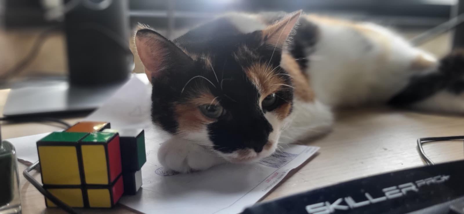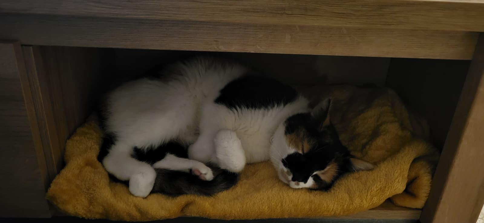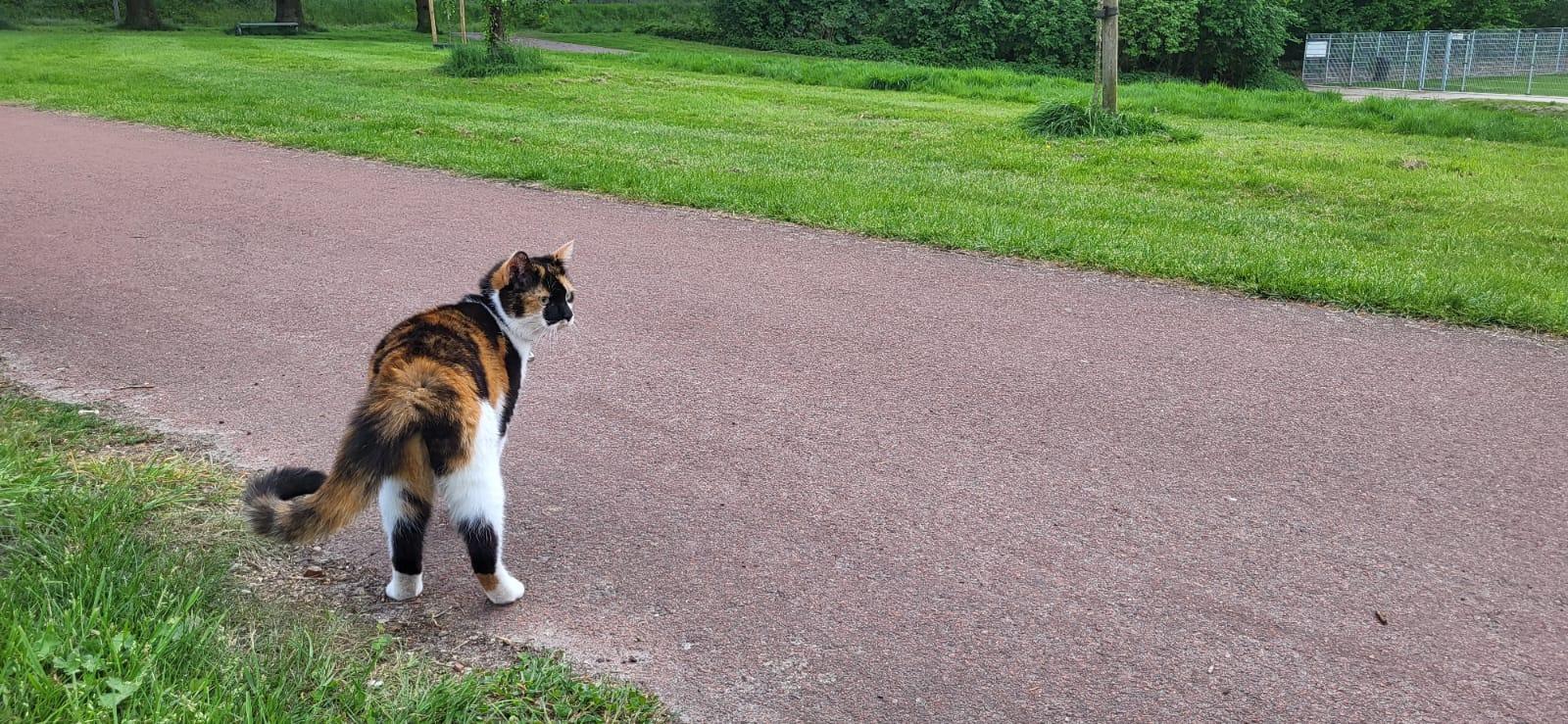 Zumi is een mix/lapjeskat en erg graag en veel buiten. We wonen naast een park waar ze graag rondstruint. Ze komt elke avond wel netjes zelf thuis. Ze komt oorspronkelijk uit een nestje op een boerderij. Ze is heel zelfstandig en redt zichzelf wel met zo nu en dan een bakje voer en water. Zumi komt ook graag zo nu en dan even mensen opzoeken, op schoot zitten of hoi zeggen tegen bezoek