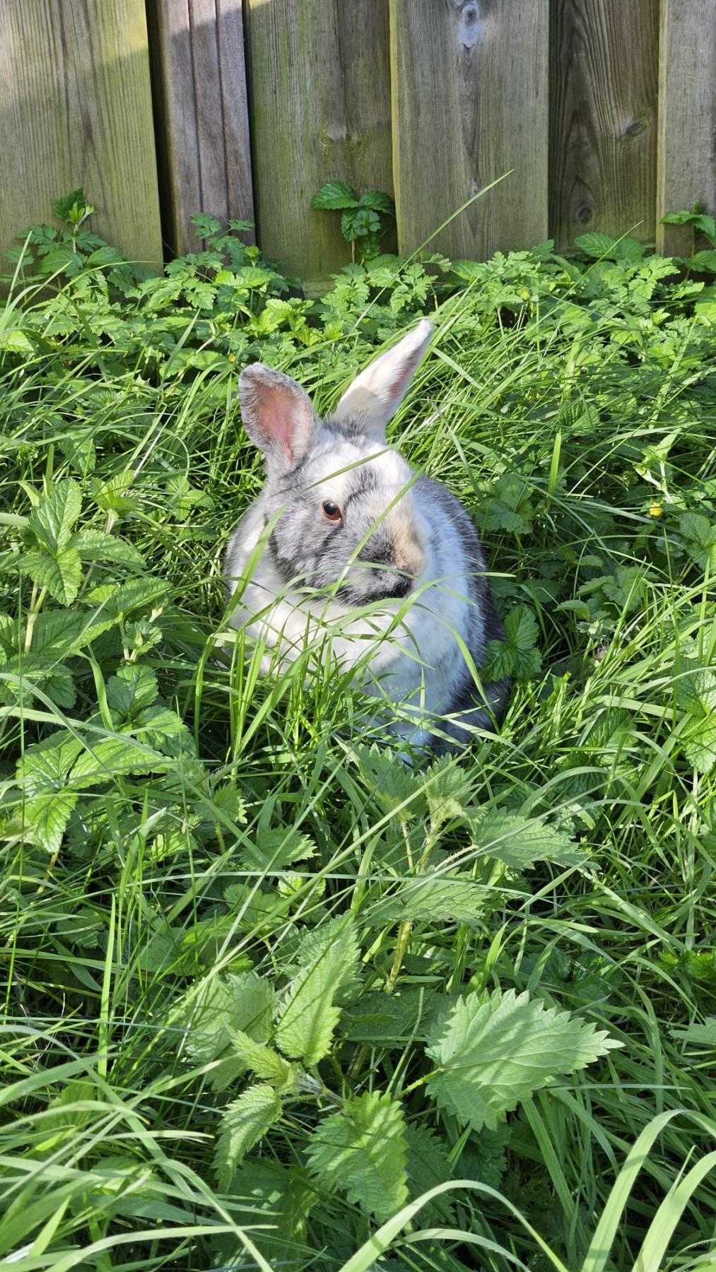 Ze zit nu buiten en samen met Morris, dus voor langere perioden als er voor water, voer en schoonmaken wordt gezorgd.