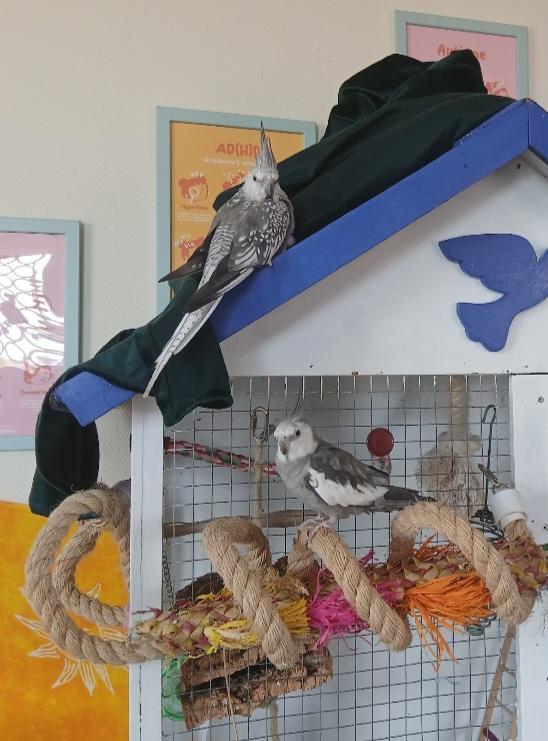 Het gaat om 2 vogeltjes: Coco en Chewie, ze gaan goed met andere vogels, eten van de hand maar zijn wel heel schuw